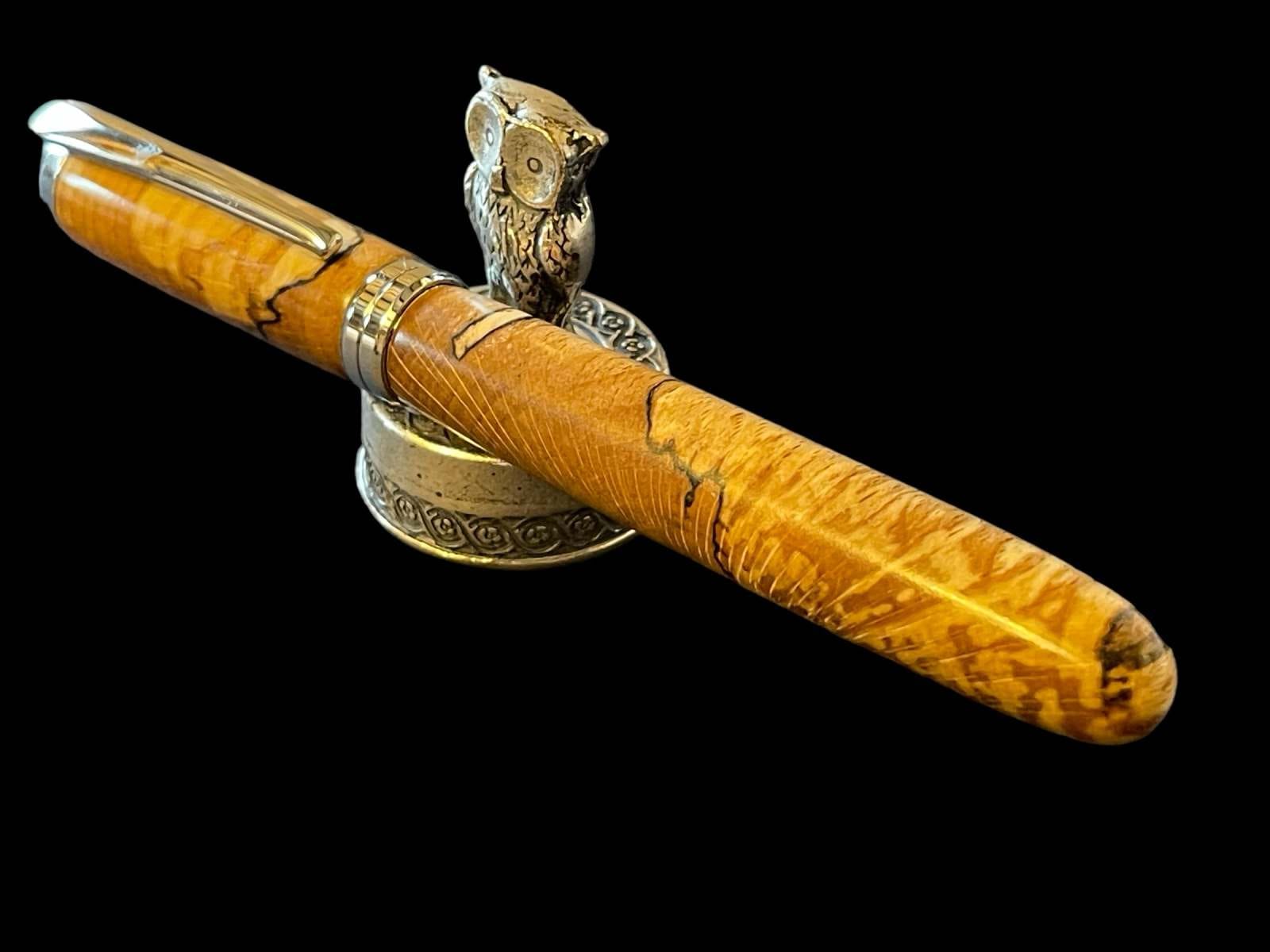 This unique handcrafted calligraphy fountain pen is made from a beautifully figured piece of English Spalted Beech, prized for its striking contrast lines and organic character. Every pen showcases a one-of-a-kind pattern, created naturally as the wood ages — making this a truly individual writing tool.